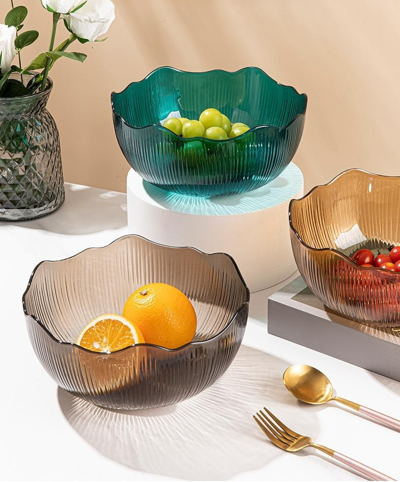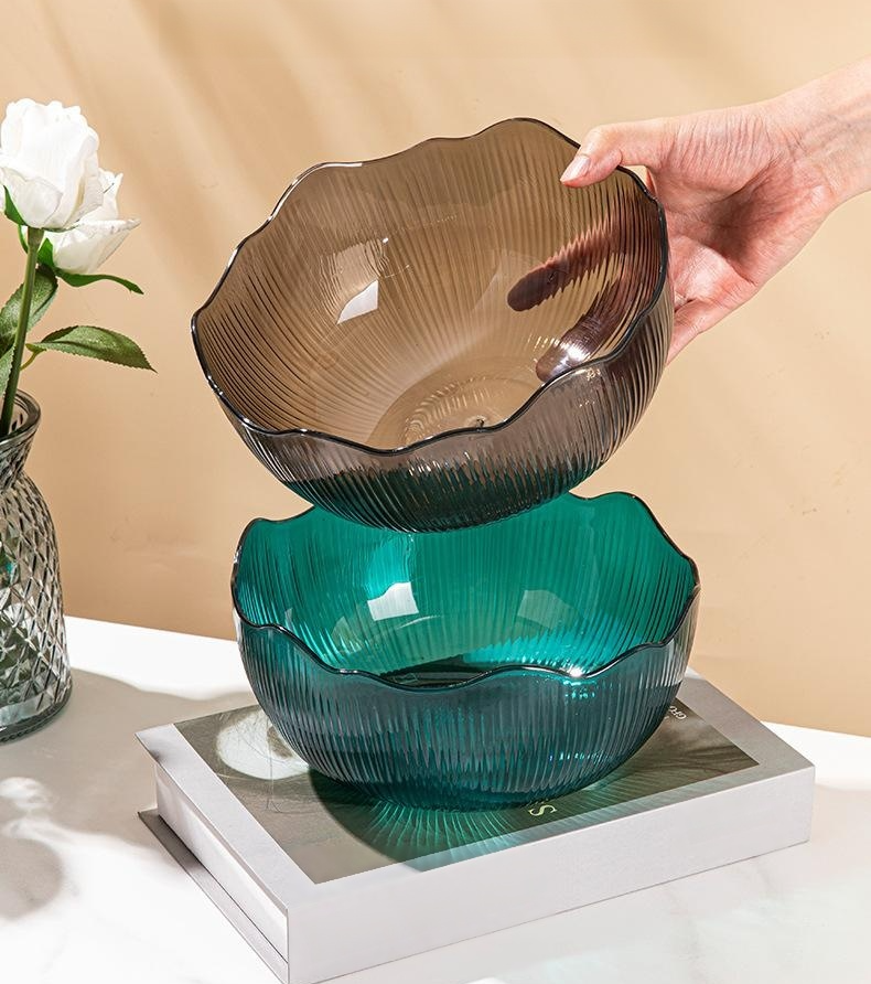 طبق فاكهة بسعة كبيرة يناسب غرفة المعيشة بتصميم بسيط، مثالي لتقديم الوجبات الخفيفة والفواكه، مصنوع من مواد متينة وسهل التنظيف.